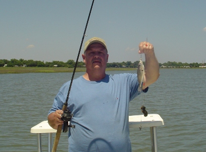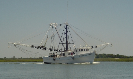 And, on another day, we took the boat to Folly Island and did a little salt water fishing. We saw a few dolphins and a shrimp boat head out to sea.