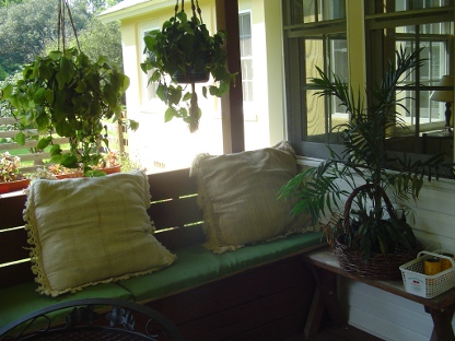 This is a good place to read a book, except in July and August (or today) when it is just too painfully hot in the middle of the day. I’d like to get one of those misting fans to cool it down some. It’s on my wish list for next year. Of course, the plants, outdoor ceiling fan and lattice help cool it a bit.