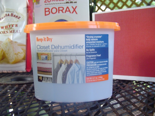 I found Borax and white cornmeal at the Piggly Wiggly and mixed a batch of desiccant.